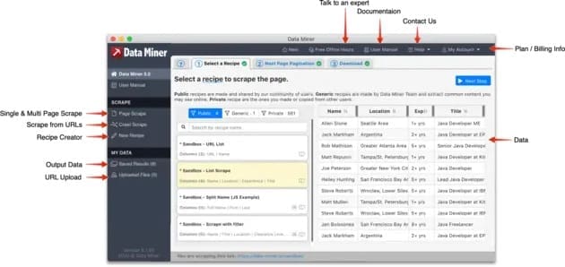Data Miner pas buat kamu yang sering kerja di browser dan butuh data dari situs web dengan cepat. Ekstensi browser ini memungkinkan kamu buat scraping data langsung dari halaman web ke dalam spreadsheet dengan beberapa klik aja. Tanpa perlu ribet, kamu bisa ekstrak tabel, list, atau elemen tertentu lainnya secara langsung.