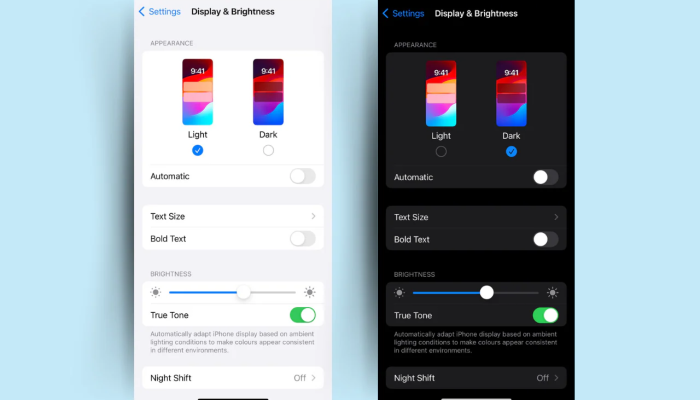Dengan tampilan gelap, intensitas cahaya biru bisa berkurang, sehingga tubuh lebih mudah rileks sebelum tidur.