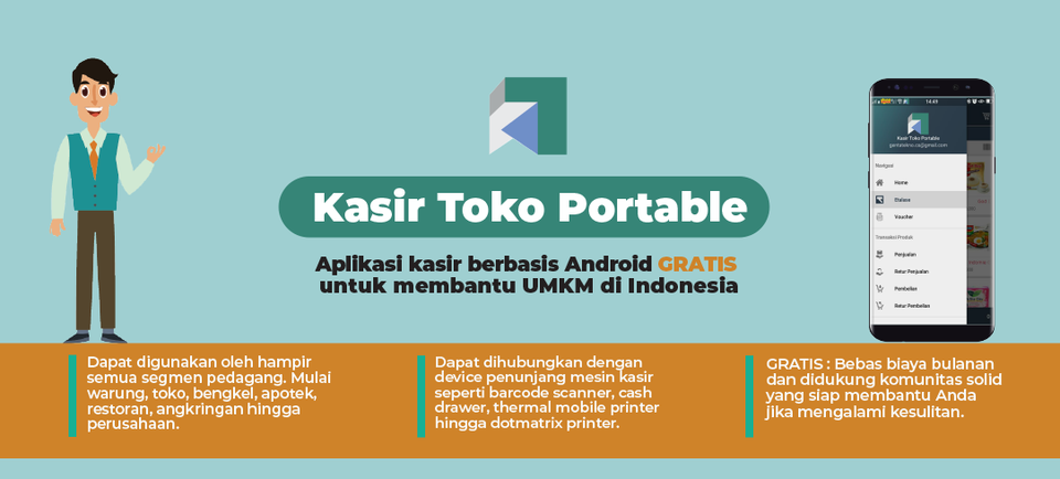 Kasir Toko Portable juga nggak makan banyak memori di HP, jadi performa HP kamu nggak bakal terganggu. Cocok banget buat kamu yang punya usaha kecil kayak warung atau toko kelontong. Simpel, cepat, dan pastinya gratis!