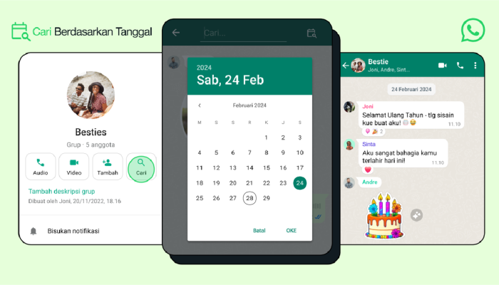 Fitur pencarian WhatsApp bisa membaca isi pesan, bukan hanya nama chat. Kata kunci unik sangat membantu.