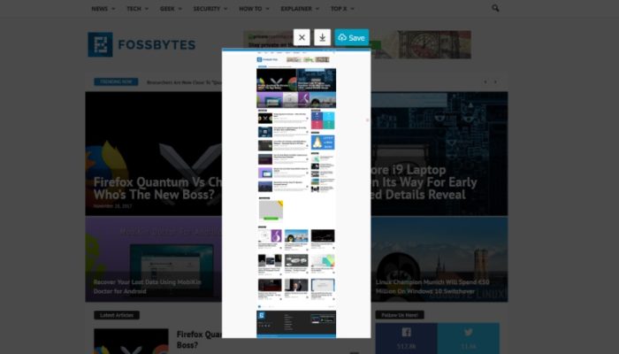 - Klik Start scrolling capture dan scroll to the end of the webpage. Selanjutnya, output Windows akan muncul dan kamu dapat memilih upload atau save gambar