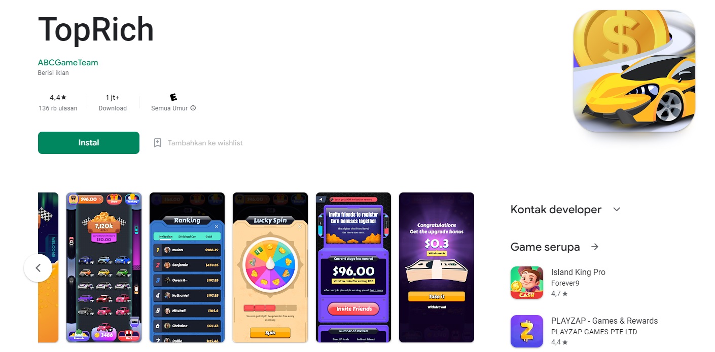 TopRich adalah game simulasi yang memungkinkan kamu buat bermain dengan konsep mengelola keuangan. Di sini, kamu bisa belajar cara mengelola aset dan strategi investasi. Nah, serunya lagi, TopRich juga memberikan reward berupa saldo Dana buat para pemain yang berhasil mencapai target tertentu.