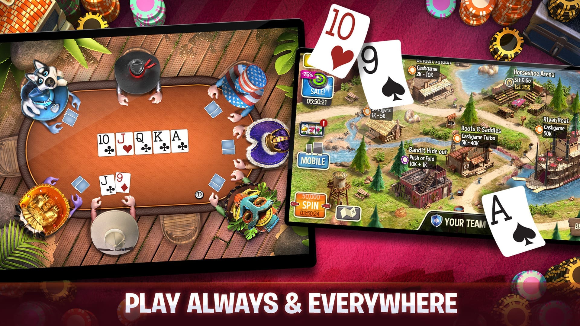 World Series of Poker atau WSOP juga nggak kalah populer di dunia game poker Android. Game ini menawarkan berbagai mode permainan poker, termasuk Texas Hold’em, Omaha, dan lain-lain. Kamu bisa merasakan sensasi bermain di turnamen poker besar-besaran seperti yang ada di dunia nyata.