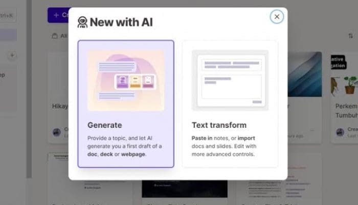 - Fitur AI Lainnya: Gamma App juga dilengkapi dengan fitur AI lainnya seperti AI Writer untuk membantu kamu menulis teks presentasi yang menarik dan AI Image Generator untuk membantu kamu membuat gambar dan grafik yang profesional.